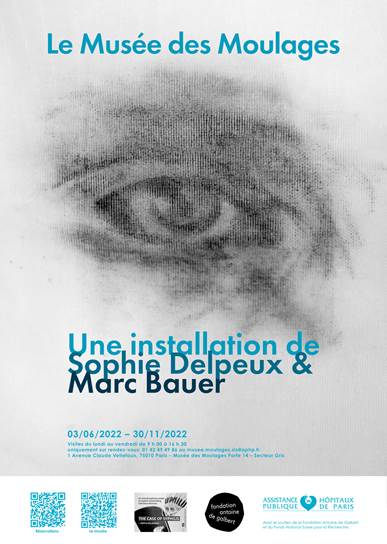 Cette proposition pour la salle des moulages du musée-bibliothèque de l’Hôpital Saint-Louis est le résultat d’une année d’échanges entre Sophie Delpeux et Marc Bauer. La collection et son histoire avaient déjà fait l’objet d’un premier travail de recherches pour l’historienne à la fin des années 1990 — elle a souhaité le revisiter et l’approfondir par une collaboration artistique. Dans l’espace, ce dialogue prend la forme d’une co-création entièrement conditionnée par la spécificité de ce lieu, son histoire, ses usages, comme les mémoires qu’il conserve. Une série d’interventions discrètes viennent les revisiter.